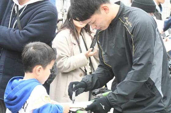キャンプイン直前の日曜日とあって2軍施設には多くのファンが来訪。小林と舟越はサインや記念撮影などで30分近くもファンに対応した。