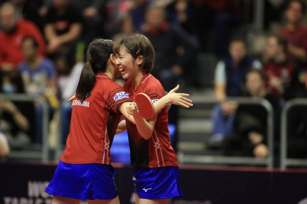 写真:決勝進出を決めた石川佳純・平野美宇(写真右)/提供:ittfworld<ITTFワールドツアープラチナ・ドイツオー…