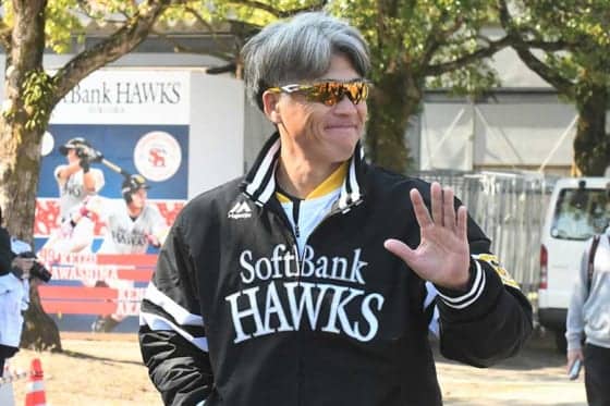 球場入りした際にはジーンズ姿だったが、グラウンドに出てくる際には15年ぶりのホークスのジャージに身を包んだ。「(王)会長がダメって。43歳、初日に怒られました。正されましたね」。王貞治会長から注意が入ったよう。さらに“工藤監督いじり”も「会長に怒られたので、その流れを工藤さんにもっていきました」と、裏話を明かして、報道陣を笑わせていた。(福谷佑介 / Yusuke Fukutani)