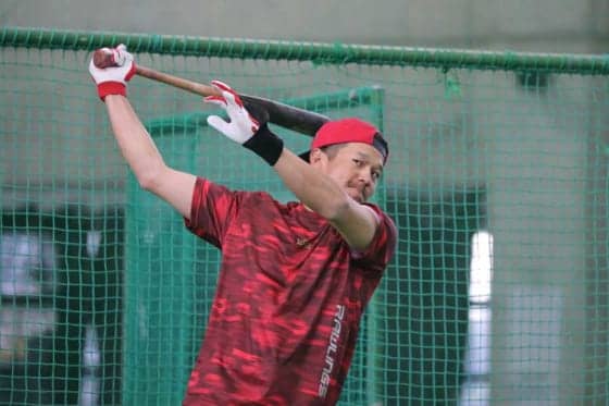 プロ18年目、36歳を迎える背番号「42」。長年、慣れ親しんだ“定位置”に返り咲くため死に物狂いでバットを振り続ける。(橋本健吾 / Kengo Hashimoto)