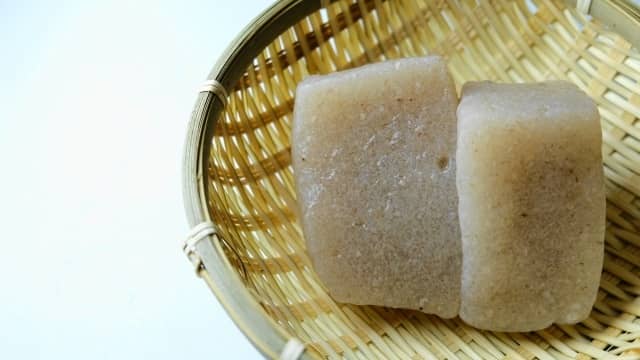 白こんにゃくは、飛び粉を混合した精粉を水で練り、水酸化カルシウム溶液(石灰乳)を加えて煮沸、凝固させることにより作られます。