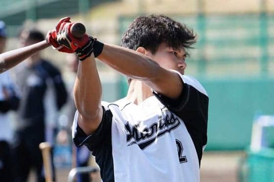 体勢を崩すほどのフルスイングで、外野のファンも思わず見上げた特大弾 ロッテは8日、キャンプ地の沖縄・石垣島で今年初の対外…