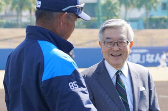 西武のキャンプを視察したNPBの斉藤惇コミッショナー【写真:宮脇広久】