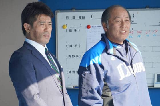 野球日本代表「侍ジャパン」の稲葉篤紀監督が9日、建山義紀投手コーチ、井端弘和内野守備・走塁コーチとともに、西武の宮崎・南郷キャンプを視察。14年ぶりにチームに復帰した松坂大輔投手ともあいさつを交わした。