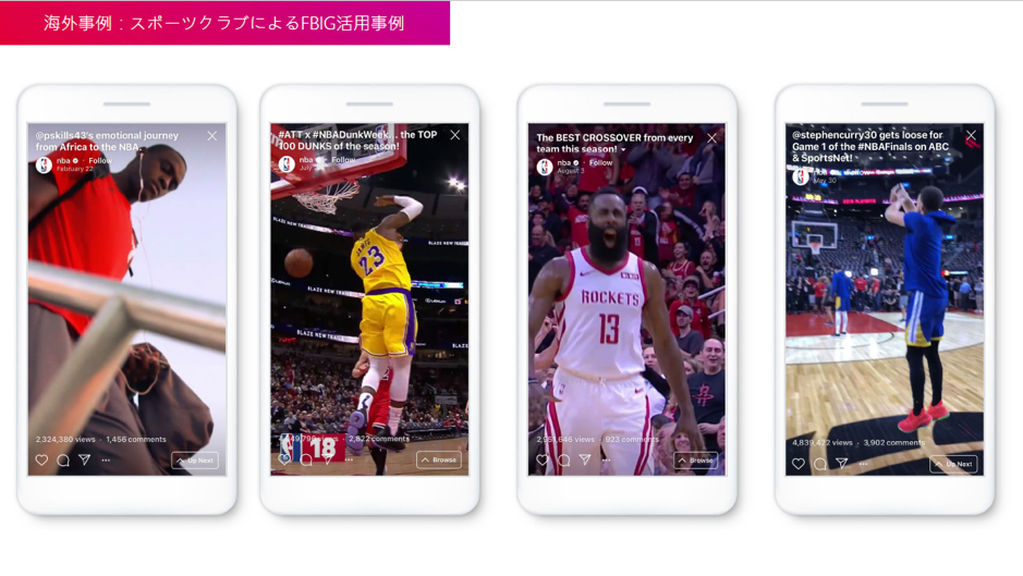 例えばIGTVを使っているNBAのチームは多いですね。試合の途中や練習シーン、プライベートの姿などの動画を作成し、IGTVに投稿しています。ストーリーズだと動画は最大15秒という制限がありますが、IGTVは縦型で最大60分の動画を投稿できます。IGTVで撮った動画のプレビューをフィードに投稿したり、ストーリーズにリンクを追加できるようになっているので、「続きはIGTVで見てね」という使い方をしているクラブチームも多いです。