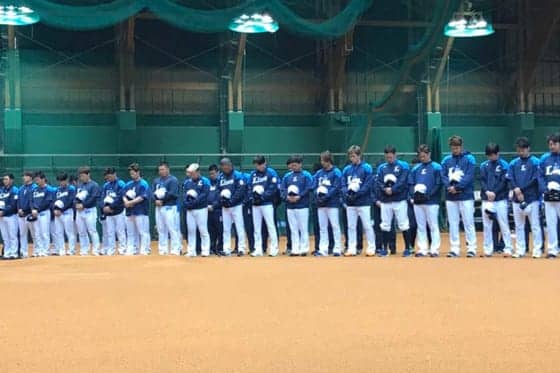 西武は11日に急逝した野村克也氏を悼み、選手らが約1分間の黙とうを捧げた【写真:安藤かなみ】