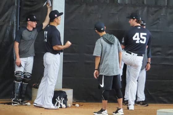 コールはブルペン投球を終えた田中に歩み寄り「どんなドリルや練習をしているのか彼に聞いた」 投手史上最高額となる9年3億2…