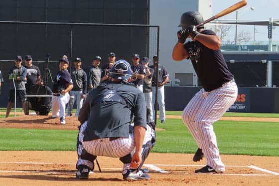 キャンプ初となる打者と対戦形式の練習に臨んだヤンキース・田中将大【写真:木崎英夫】