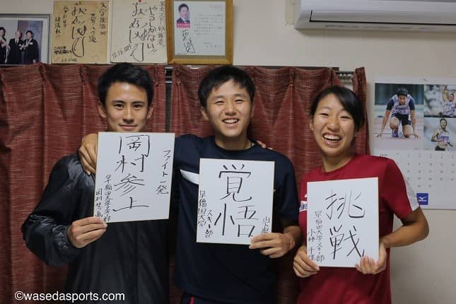 連載の初回には、クロスカントリー部門を引っ張っている、岡村慧胤(スポ3=長野・白馬)、山下陽暉(スポ3=富山・南砺平)、小林千佳(スポ3=長野・飯山)の同級生トリオが登場する。が、取材の予定時間になってもその岡村の姿が見当たらない。というのも、取材の時間の伝達がうまくいっておらず、岡村が1人でランニングに行ってしまったのだ。待つこと1時間、岡村がランニングから帰ってきたシーンから、対談はスタートする。