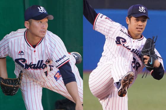 ヤクルト・石川雅規(左)と小川泰弘【写真:荒川祐史】
