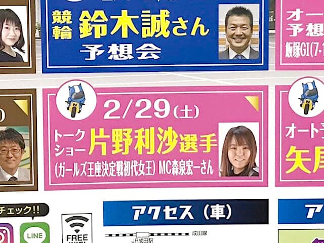 女子オートレーサー“リサマックス”こと片野利沙(川口32期)選手のトークショーが行われます!