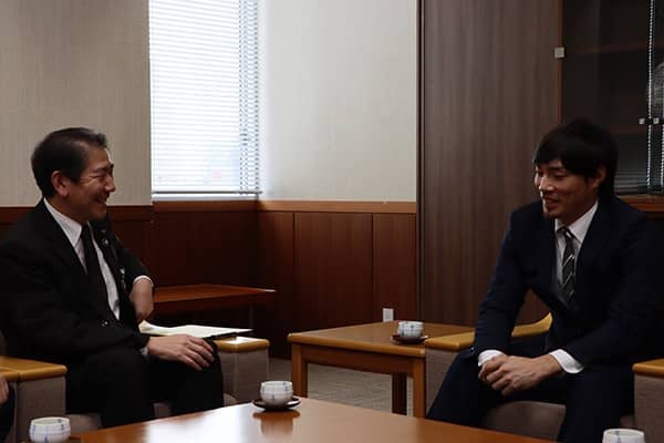 茅ヶ崎市長を表敬訪問。地元パレードは実現するか?(写真=タウンニュース)