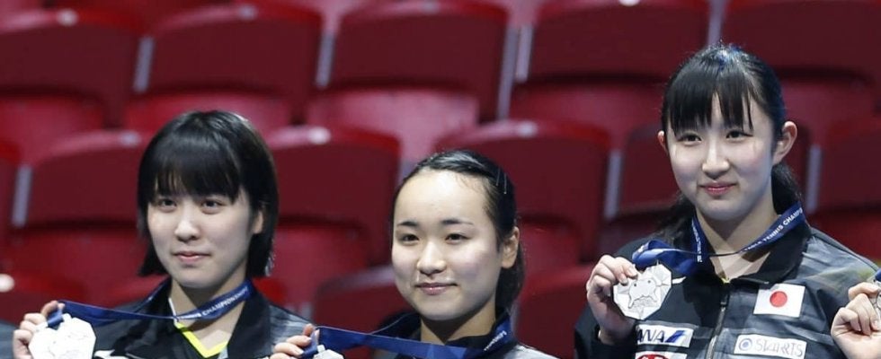 写真:左から平野美宇、伊藤美誠、早田ひな(2018年世界卓球時)/撮影:新華社/アフロ