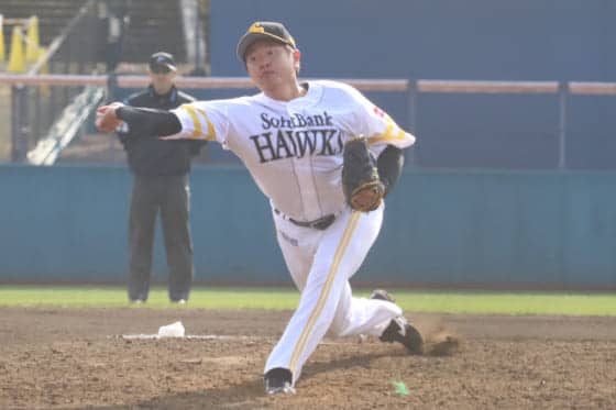 ソフトバンクのドラフト3位ルーキー津森宥紀投手が鮮烈な対外試合デビューを飾った。26日に行われた「球春みやざきベースボールゲームズ」ロッテ戦で対外試合初登板。7回から登板すると、2イニングを2安打無失点に封じて4個の三振を奪った。
