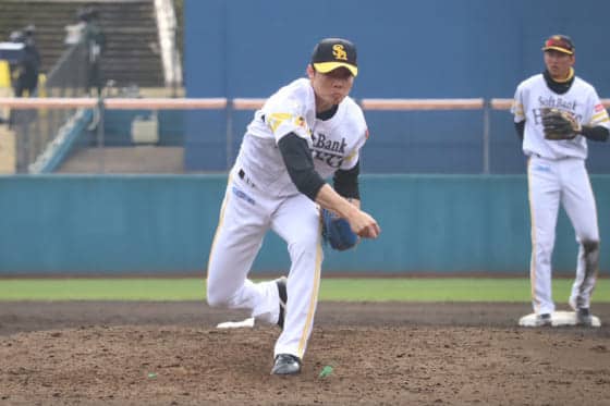 千賀が右前腕部の張りで調整が遅れ、左太もも裏を痛めた高橋礼も出遅れている。開幕ローテに不安が残る中で、石川と松本の好投は朗報。開幕ローテの有力な候補となる投球だった。(福谷佑介 / Yusuke Fukutani)