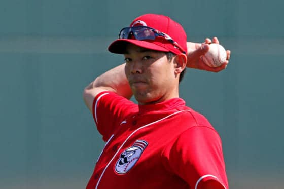 レッズの秋山翔吾外野手は2日(日本時間3日)、米アリゾナ州グッドイヤーで行われたドジャースとのオープン戦で「1番・中堅」で先発出場。3回の守備では初の補殺を記録した。レッズの球団公式ツイッターは、そのプレー動画を公開。日米ファンから多くのコメントが寄せられた。