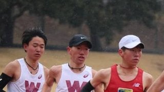 冷たい雨の中行われた第5回早大長距離競技会。多くの選手が元々この日に行われる予定だった日本学生ハーフマラソン選手権に照…