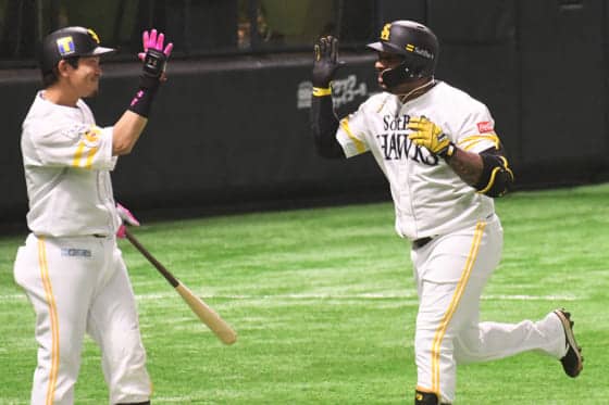 10日にPayPayドームで行われた巨人とのオープン戦。「4番・DH」でスタメン出場したバレンティンがいきなり快音を響かせた。1点を先制して迎えた、なおも一、三塁のチャンス。巨人先発の戸郷のボールを捉えると、打球は中堅バックスクリーンへと飛び込む特大の3ランとなった。