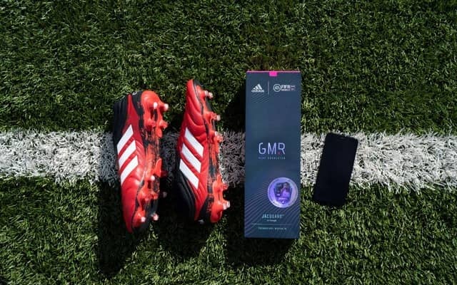 シューズ内に搭載されたジャカードタグは、ピッチでのプレイヤーの動きを認識。EA SPORTS FIFA Mobileでユニークな体験を提供する。また、adidas GMR購入者限定特典として、オリジナルのパウロ・ディバラ選手(95 OVR付)を獲得できる。