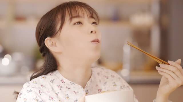 石川佳純がどんぶりを食べて、挿入歌を口ずさむ!JA全農CMオンエア
