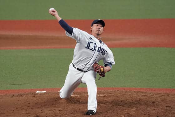 ヤクルトとのオープン戦に3番手で登板した西武・松坂大輔【写真:荒川祐史】