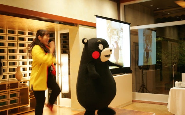 初代ゆるキャラグランプリの「くまモン」が9月27日、東京都港区のフランス大使公邸で行われたパーティーに招待され、ティエリー・ダナ駐日大使ら出席者の前で『ハッピーくまモン・フランス語バージョン』の歌に合わせて得意のダンスを披露した。