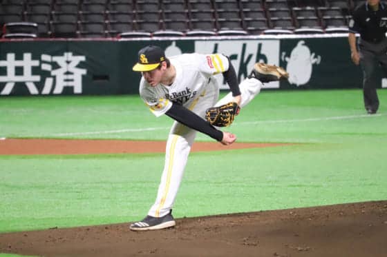 初回は3つの四球で満塁のピンチを背負うも、なんとか無失点で切り抜ける ソフトバンクの元米ドラフト1巡目カーター・スチュワ…
