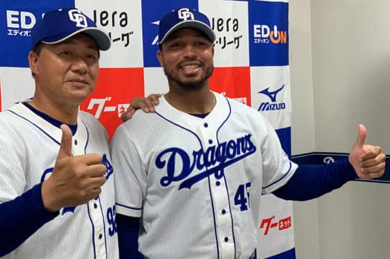 喜び語ったシエラ「211番は体が重く感じた。45番になって、体が軽く感じる」 中日の支配下登録選手として契約を結んだモイ…