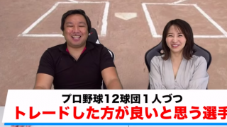 「野球界、世間の皆さんをざわつかせる企画考えてきました」と前振りし、「プロ野球12球団1人ずつトレードした方が良いと思う選手」とお題を発表。
