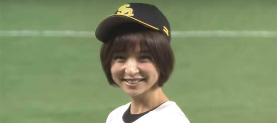【始球式名場面】笑顔で球場魅了! 元AKB48篠田麻里子は熱男Tシャツ&ホットパンツ姿で登板 | 野球