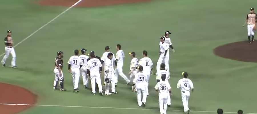 ソフトバンク・柳田への死球がキッカケで両軍がベンチから飛び出し一触即発に…【画像:パーソル パ・リーグTV】