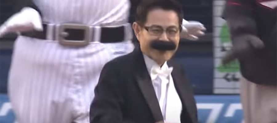 加藤茶さんは「髭ダンス」のリズムに乗りタキシード姿で始球式 新型コロナウイルスの感染拡大を受けて開幕の無期限延期が決まっ…