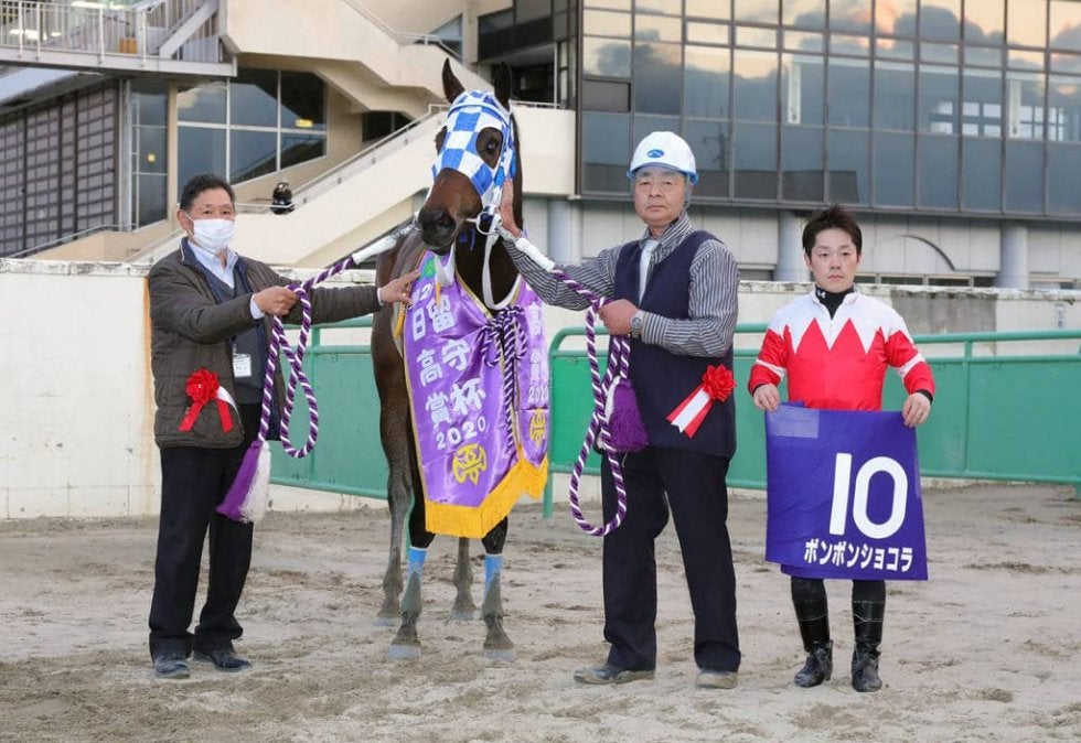 26日、水沢競馬場で行われた11R・留守杯日高賞(ダノンシャーク賞・M1・3歳牝・ダ1600m)で1番人気、山本聡哉騎乗、ボンボンショコラ(牝3・浦和・小久保智)が快勝した。2馬身差の2着にレッドカード(牝3・北海道・林和弘)、3着にキクノナナ(牝3・兵庫・田中一巧)が入った。勝ちタイムは1:43.8(稍重)。