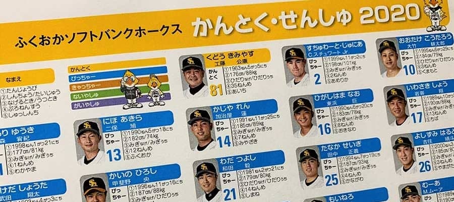 「かんとく・せんしゅ2020」には、工藤公康監督と支配下登録の67選手を掲載。選手名と生年月日や身長体重、出身地などがひらがなで表記されている。大きさはA4サイズでPDFデータをダウンロードすれば、タブレットなどで閲覧できるほか自宅のプリンターやコンビニでプリントアウトが可能だ。