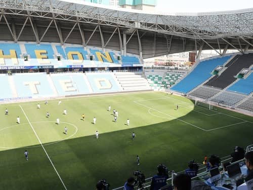 新型コロナウイルス感染の収束が進んだ韓国で行なわれた、サッカーの無観客試合の様子