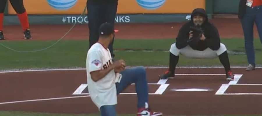 始球式に登場したコリン・キャパニック(画像はスクリーンショット)