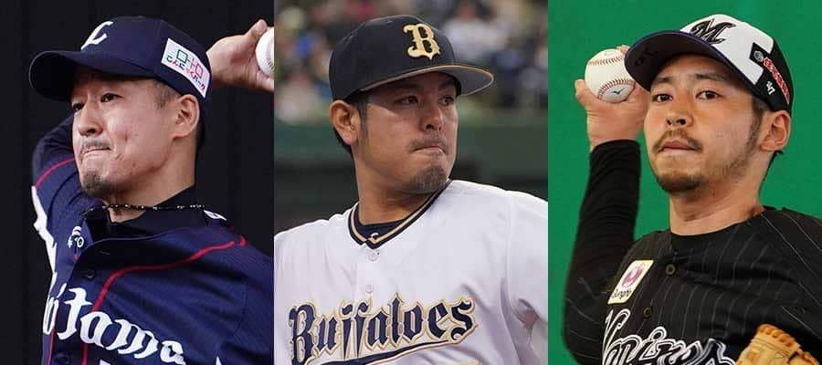 西武・平井克典、オリックス・比嘉幹貴、ロッテ・東條大樹(左から)【写真:荒川祐史】