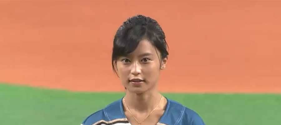 スカートひらり… 女優・大政絢さんが豪快投球でファン魅了「可愛すぎて」