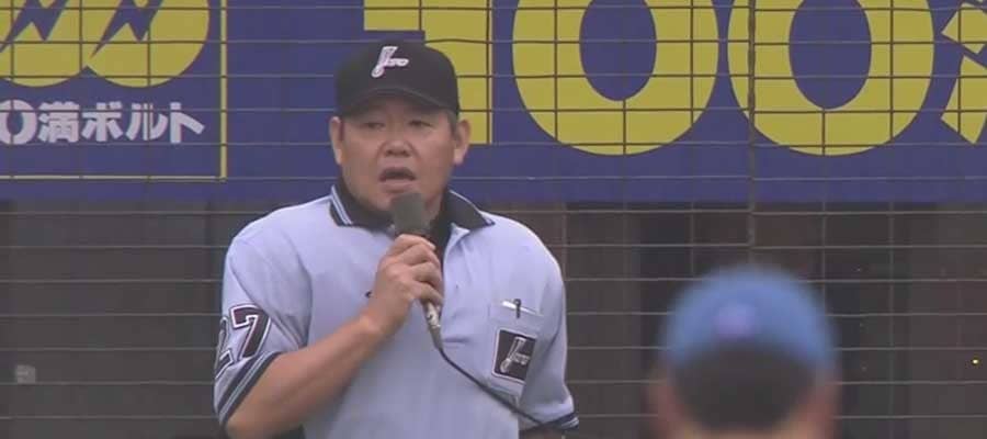 審判が何やら宣告、夏の釧路で滅多にお目にかかれない結末に…【画像:パーソル パ・リーグTV】