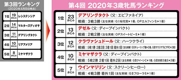 5位は、フローラSを勝ったウインマリリン。2位のデゼル同様、トライアル戦を制して、初のランクインを果たした。