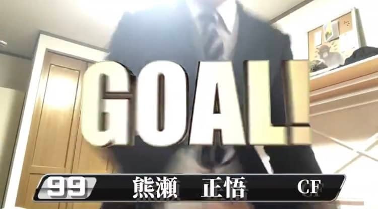 ゴールを決め喜ぶゲーム内の熊瀬【サッカー部公式インスタグラムより】