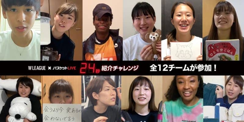 『24秒紹介チャレンジ』は、選手が好きなものや趣味等を24秒間で紹介するもので、すでにBリーグ36チームの選手のチャレンジ映像が順次配信中。Wリーグ12チームもこれに続き、21日から28日にかけて毎日2チームずつ映像が公開される予定となっている。(※23日、24日を除く)