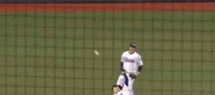 韓国ロッテの遊撃手シン・ボンギが平凡な飛球をヘディングでアシスト 新型コロナウイルスの感染拡大を受けて開幕延期中のプロ野…
