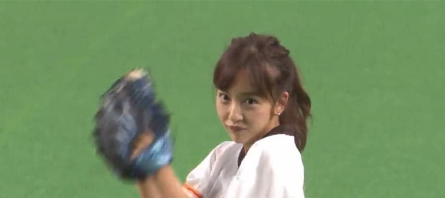 【始球式名場面】元AKB48板野友美さんに球場メロメロ! 笑顔溢れるツーバウンド投球