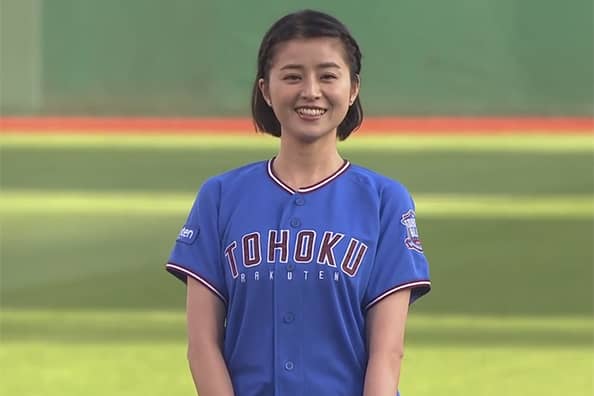 スカートひらり… 女優・大政絢さんが豪快投球でファン魅了「可愛すぎて」