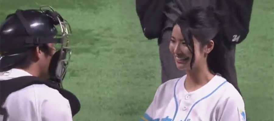 【始球式名場面】元AKB48の美しき笑顔に球場魅了 倉持明日香さんのノーバウンド投球 | 野球