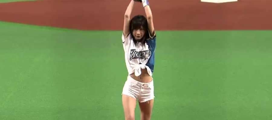 【始球式名場面】美女のおヘソがチラリ… 元AKB石田晴香さんの笑顔全開ツーバウンド投球 | 野球