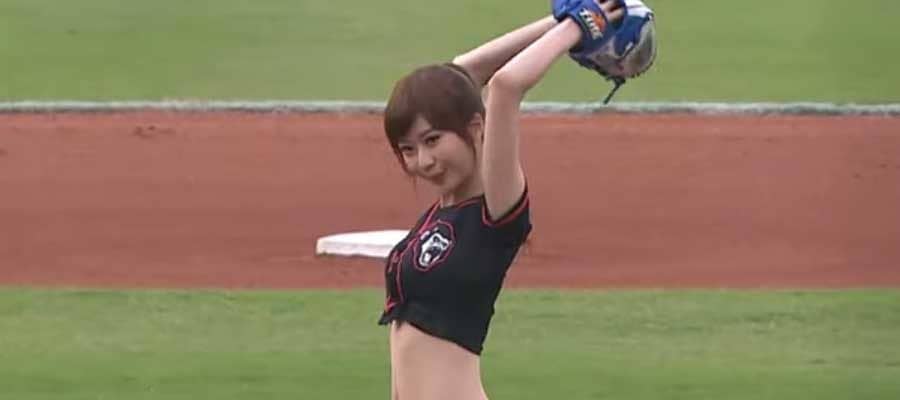 スカートひらり… 女優・大政絢さんが豪快投球でファン魅了「可愛すぎて」
