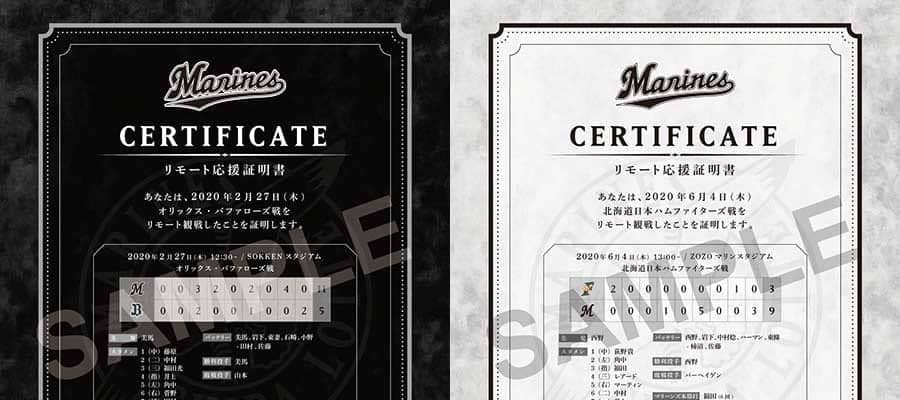 ビジターゲームの観戦証明書(左)とホームゲームの観戦証明書【写真:球団提供】