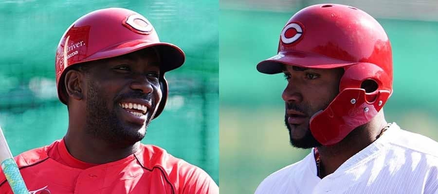 広島のホセ・ピレラ(左)とアレハンドロ・メヒア【写真:荒川祐史】